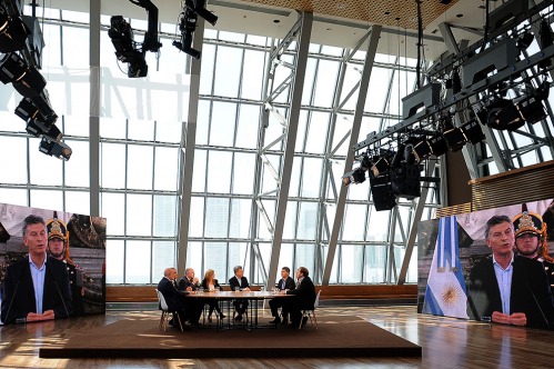 Mauricio Macri recibió este mediodía en la cúpula del Centro Cultural Kirchner a periodistas de El Cronista Comercial, La Nación, Agencia Télam, Infobae, Canal 10 de Tucumán y Canal 12 de Córdoba, que en un formato inédito para el país entrevistaron al jefe de Estado durante algo más de una hora.