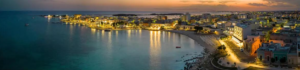 El anochecer transforma la ciudad en un escenario distinto. Las luces se encienden en los balcones, las sombras se vuelven más profundas, el mar se oscurece hasta convertirse en una superficie casi inmóvil. El ritmo se vuelve más lento, más íntimo. Porto Cesareo se convierte en un espacio donde la noche revela detalles que pasan desapercibidos durante el día. El viajero siente que el lugar lo acompaña, que lo envuelve, que lo invita a quedarse un poco más.